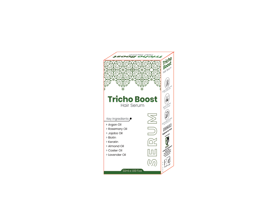 Formulated with advanced active ingredients, Tricho Boost Hair Serum helps stimulate blood circulation in the scalp, strengthen roots, and improve hair density over time. Regular use can reduce breakage, control frizz, and add natural shine to dull hair. It is suitable for men and women and works well on all hair types.